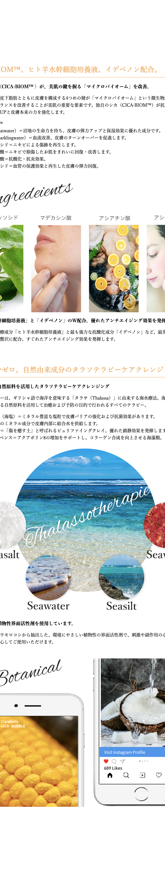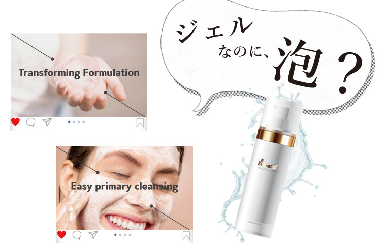 軽いテクスチャーのタラソテラピージェルをお肌にのせてなじませると、しゅわしゅわっと発泡する新感覚バブルクレンジング。シカの微細な泡が毛穴のメイク汚れや古い角質・老廃物まで、やさしく除去。くすみのないつやすべ肌に導きます。