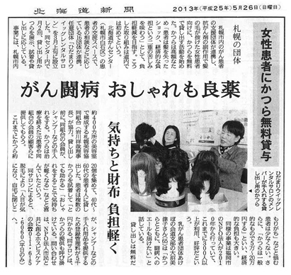 ●新聞(2013/5/26付・北海道新聞)拝見しまして、がん闘病 おしゃれも良薬のタイトル